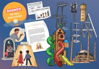 Illustrationen, Texte, Sounds und Beispielarbeitsblätter zum Thema „Bauen und Konstruieren: Türme”.