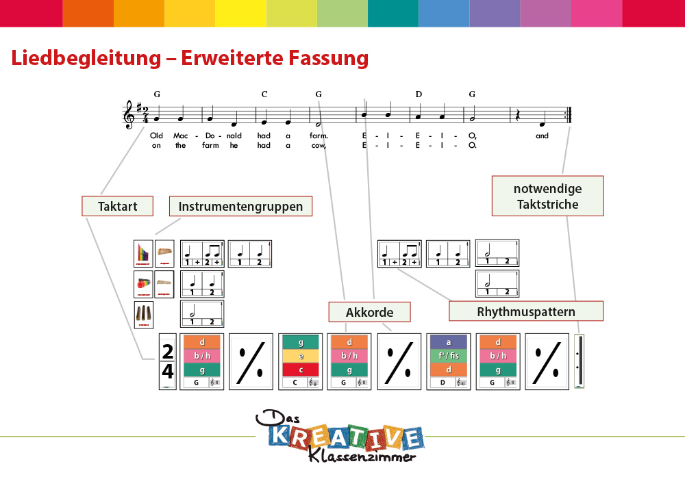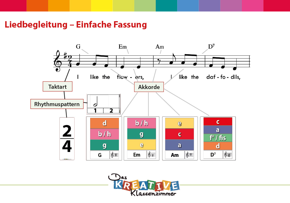 Durch die Verwendung kindgerechter Visualisierungen, alternativer Notationsformen, einer Farbzuweisung, den gängigsten Akkorden und grundlegender rhythmischer Patterns steht einem erfolgreichen Musizieren nichts mehr im Wege! Zusätzlich zu den Karten ist in diesem Paket eine Einführung für den Gebrauch im Unterricht enthalten.